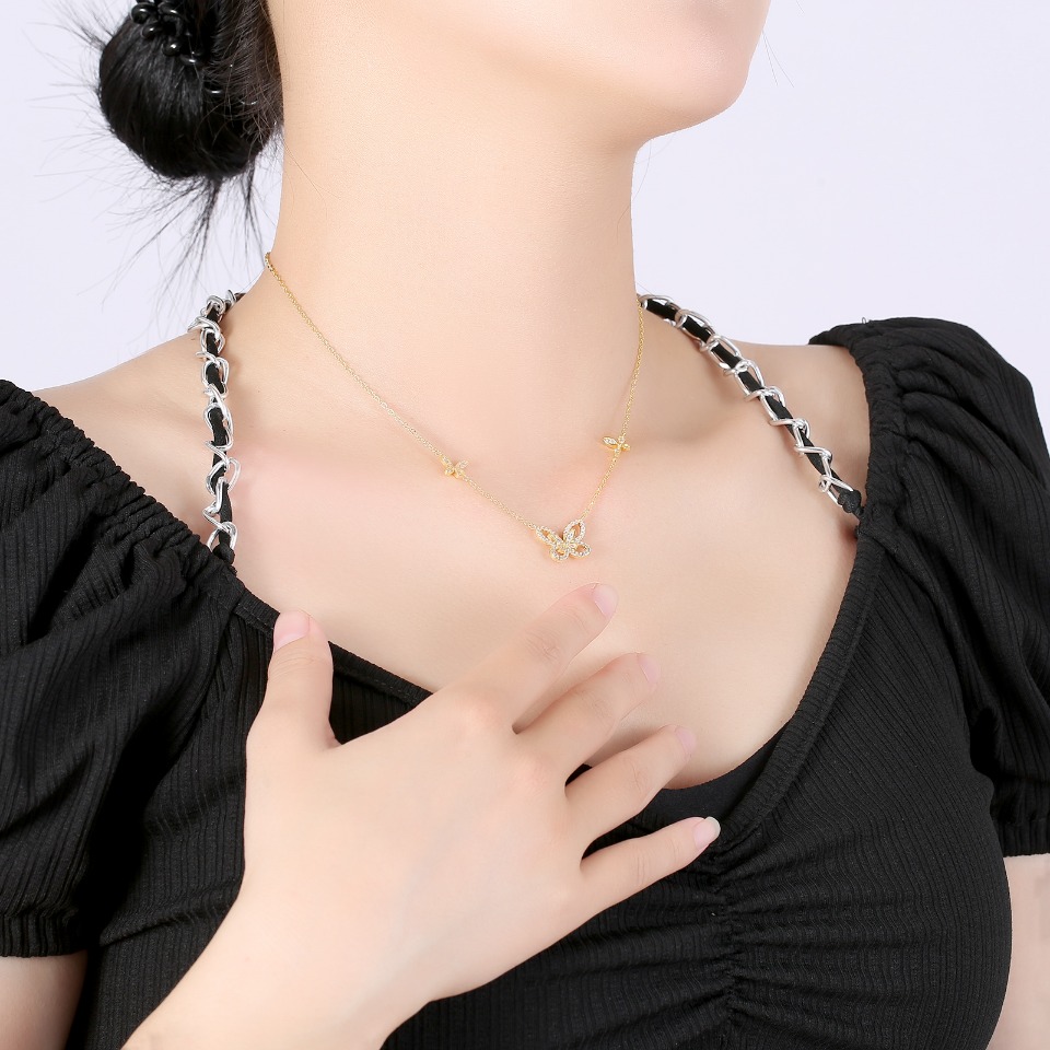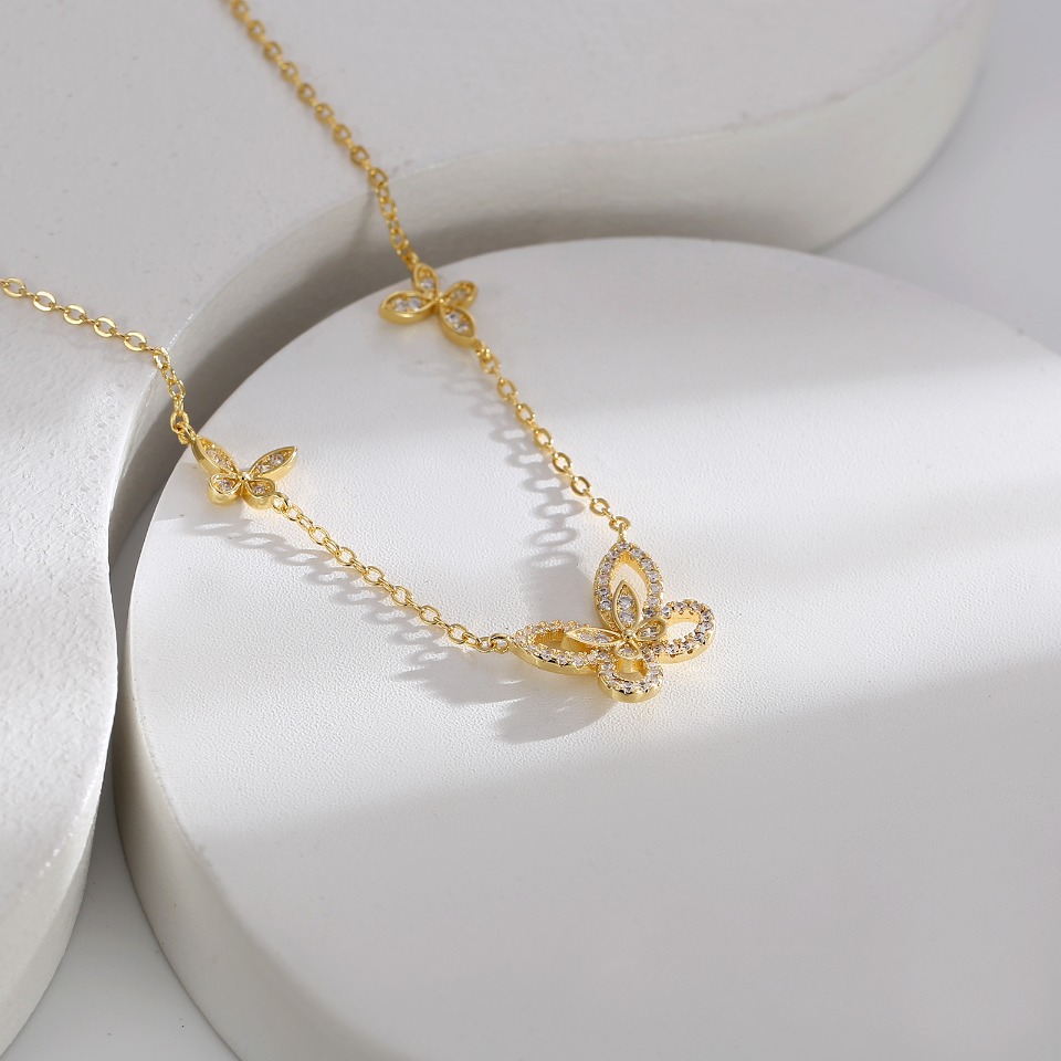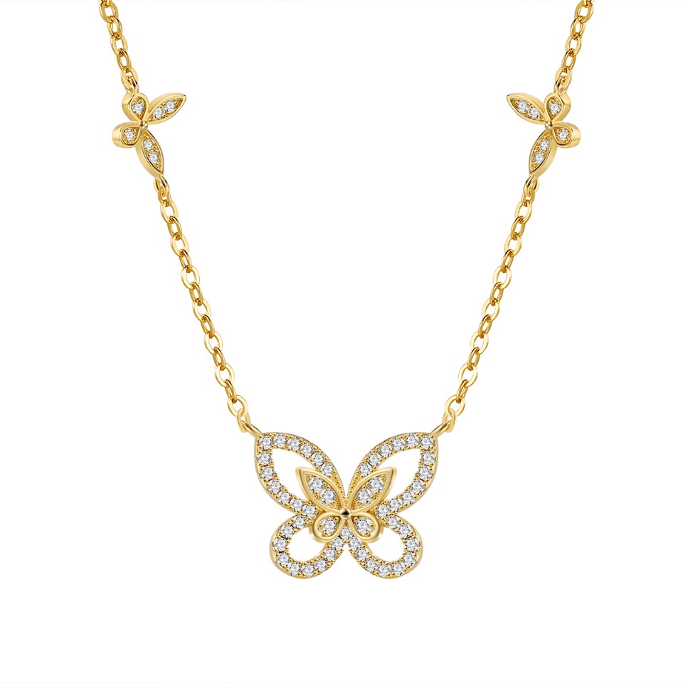 Eco-friendly copper with genuine gold plating + butterfly necklace