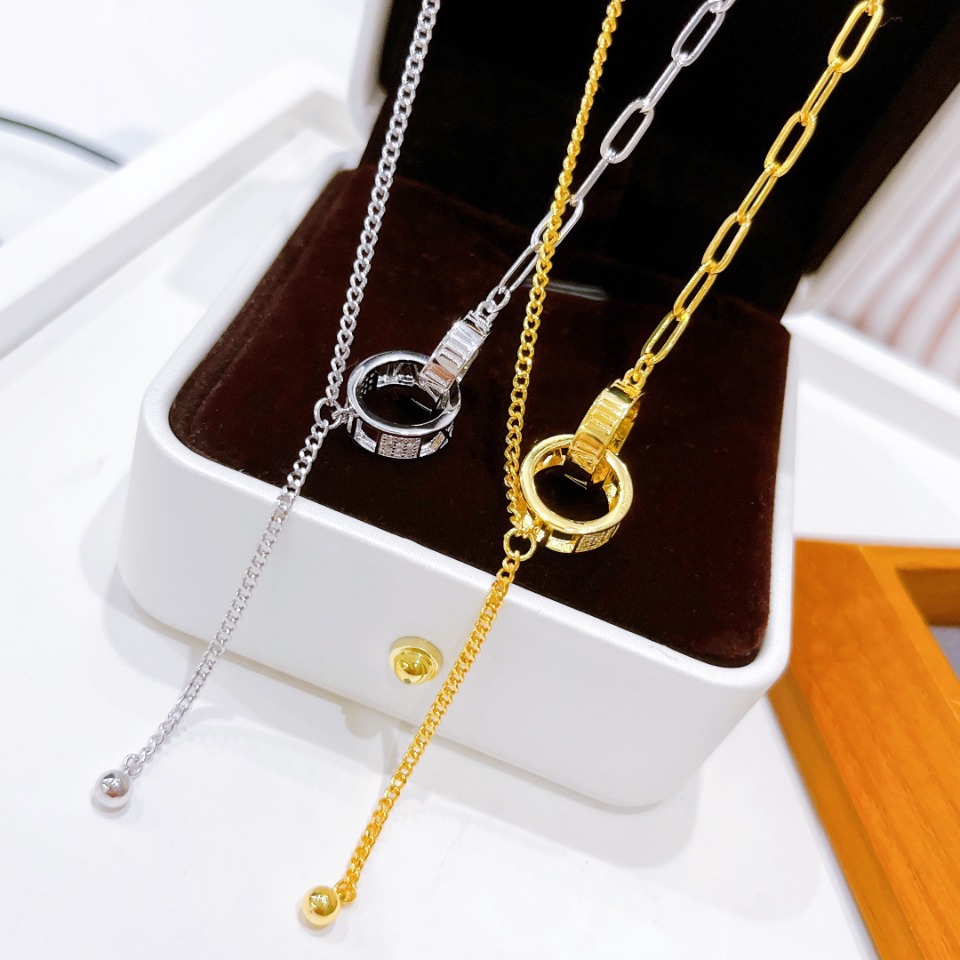 Eco-friendly Copper Necklace with Real Gold Electroplating & Double-Ring Design