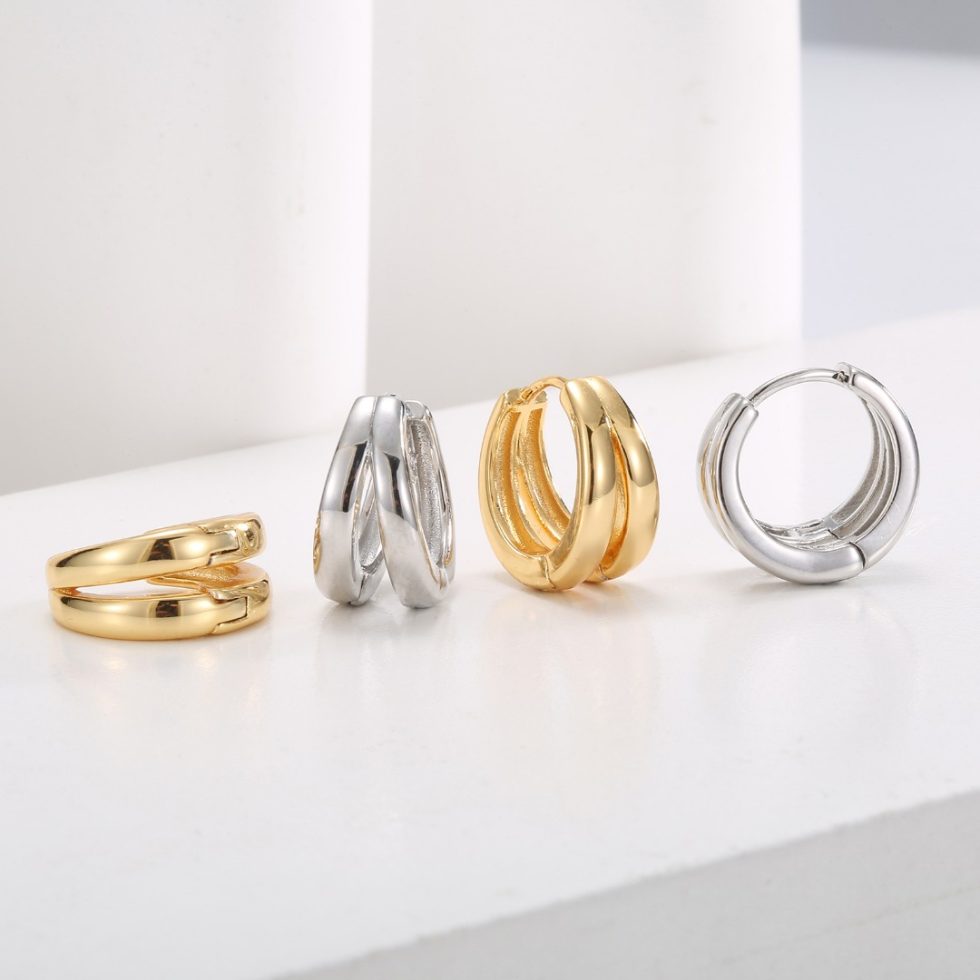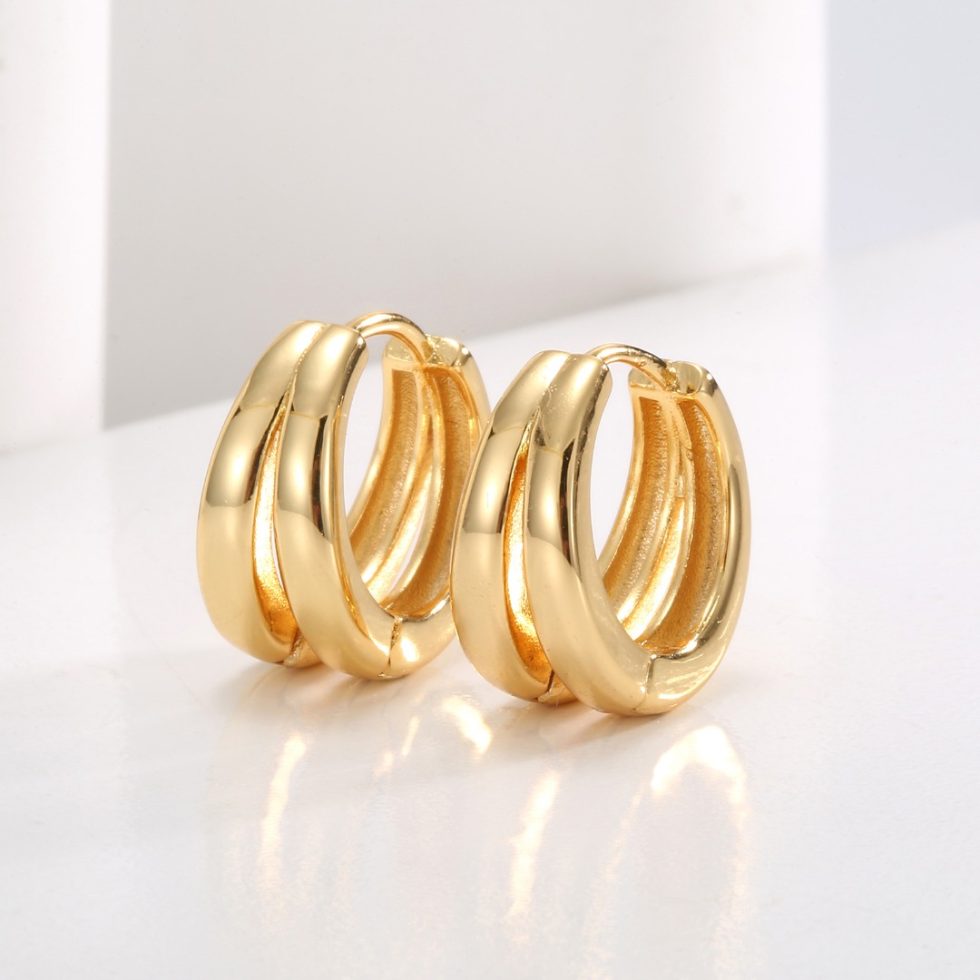 Eco-Friendly Copper Earrings with Real Gold Plating and Metallic Design
