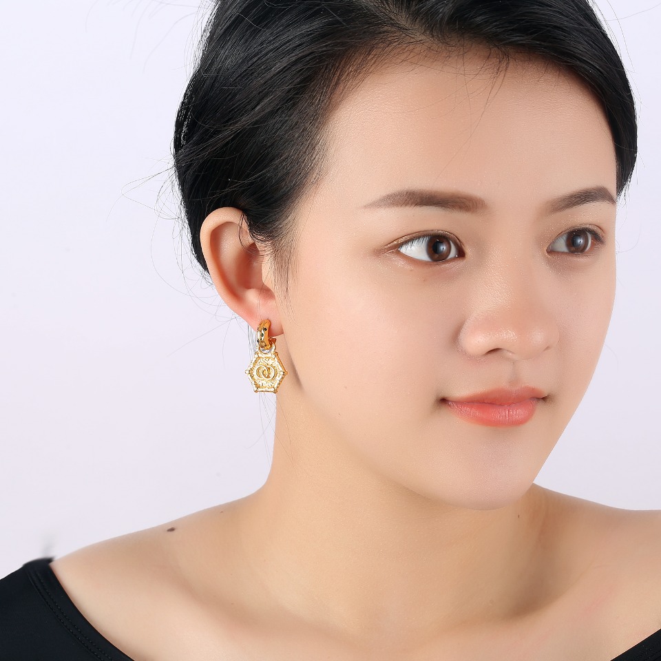 Product Eco-friendly copper earrings with real gold electroplating