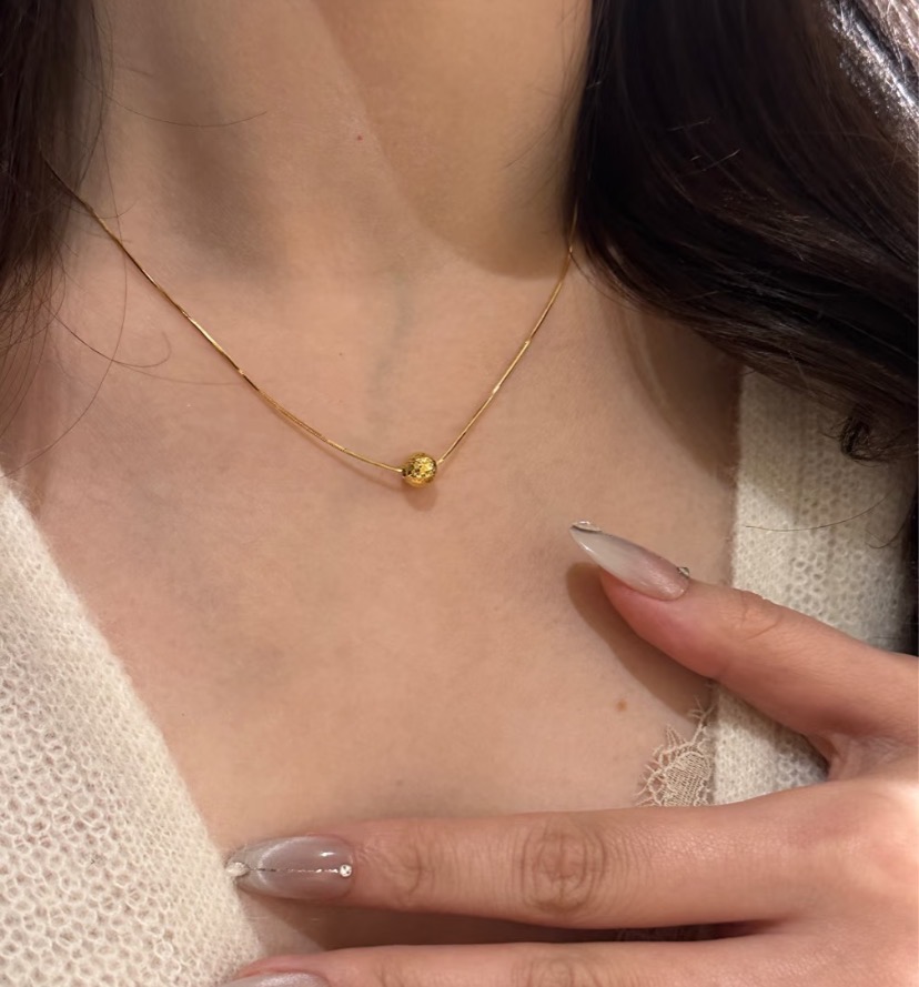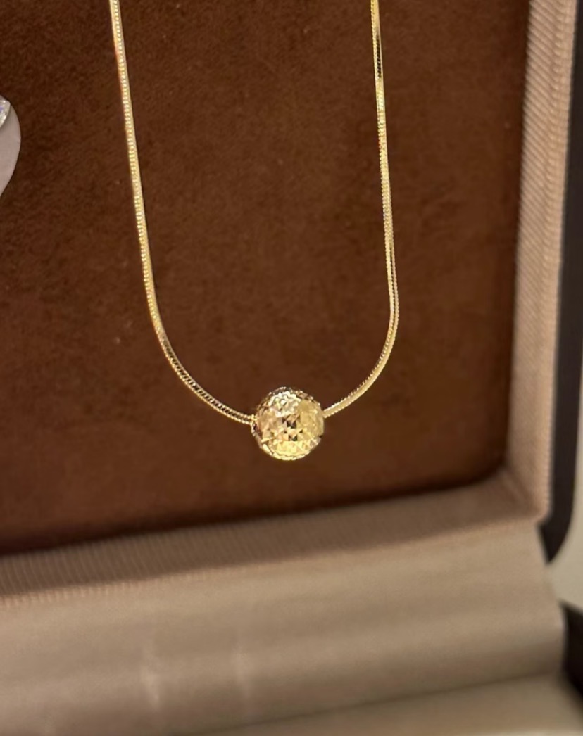 Eco-friendly Copper Genuine Gold Plated Necklace with Crushed Ice Finish Gold Ball