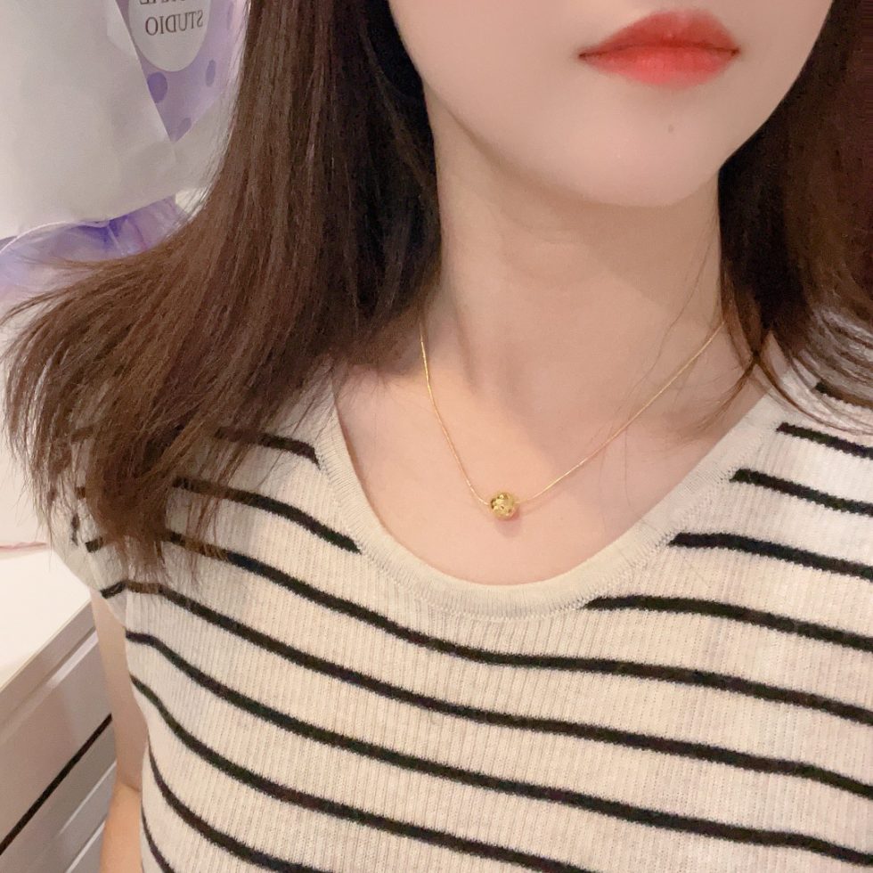 Design: Crushed ice texture gold pendant combined with delicate ball chain