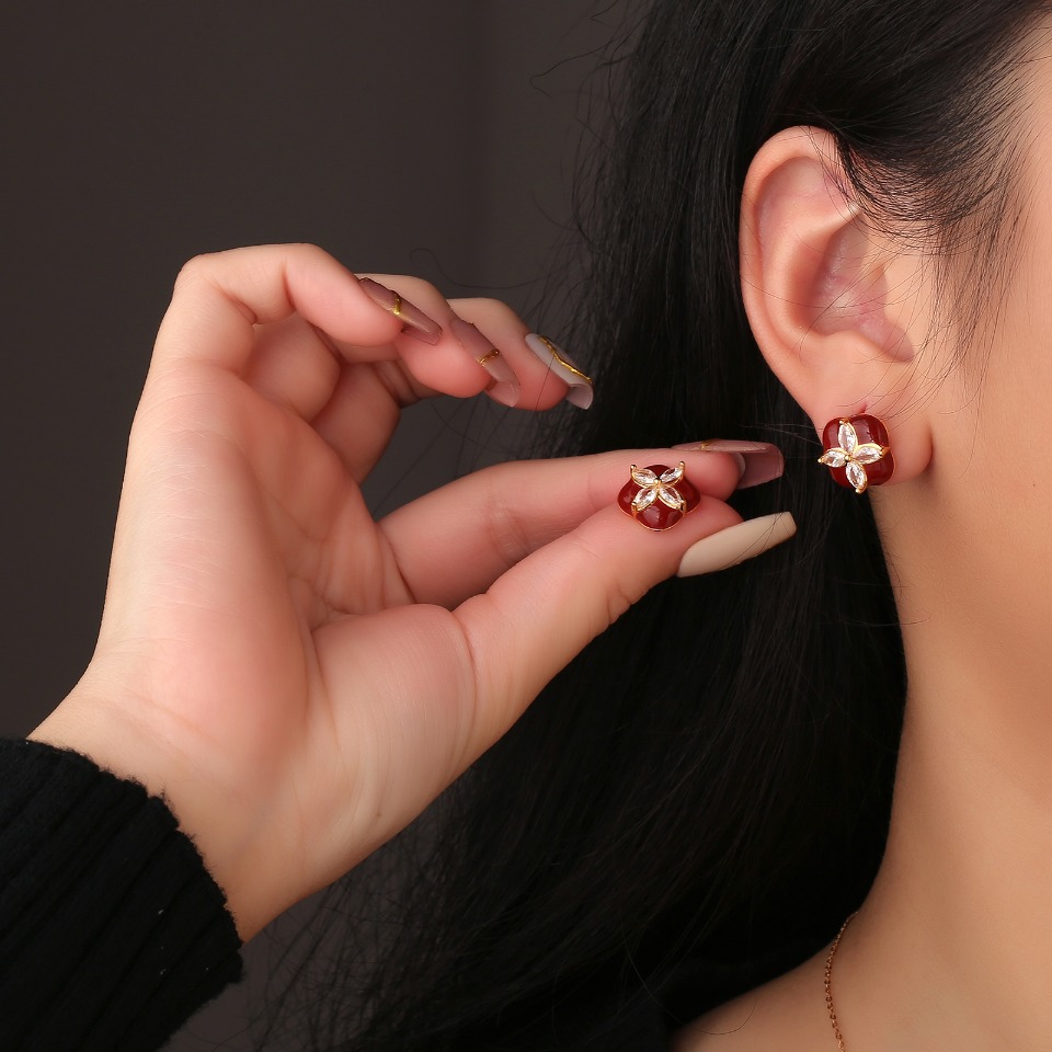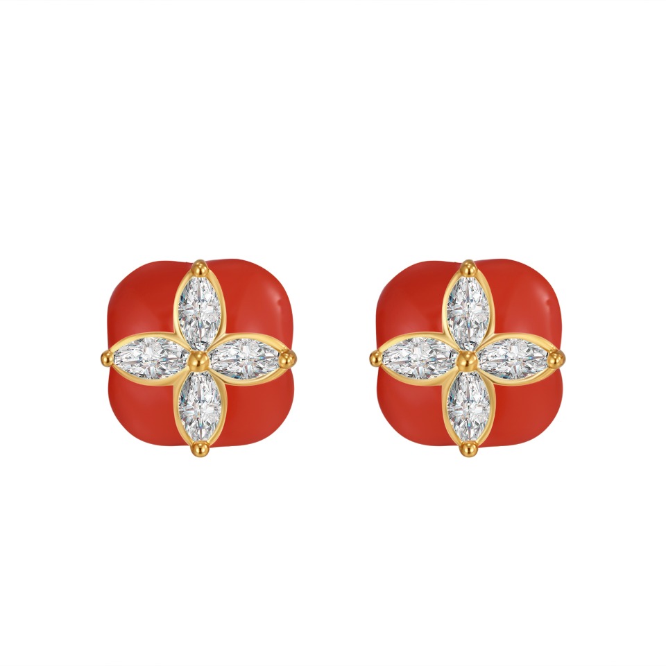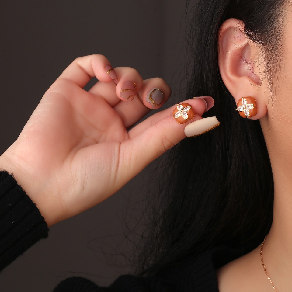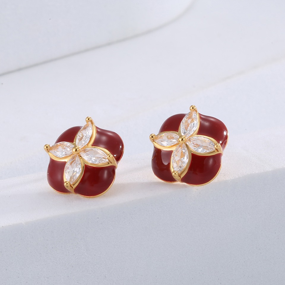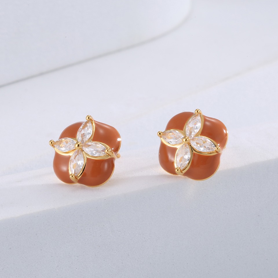 Eco-friendly Copper Genuine Gold Plated Stylish Ear Studs