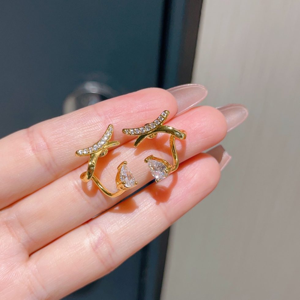 Eco-Friendly Copper Gold-Plated Crescent and Tiny Drop Ear Studs