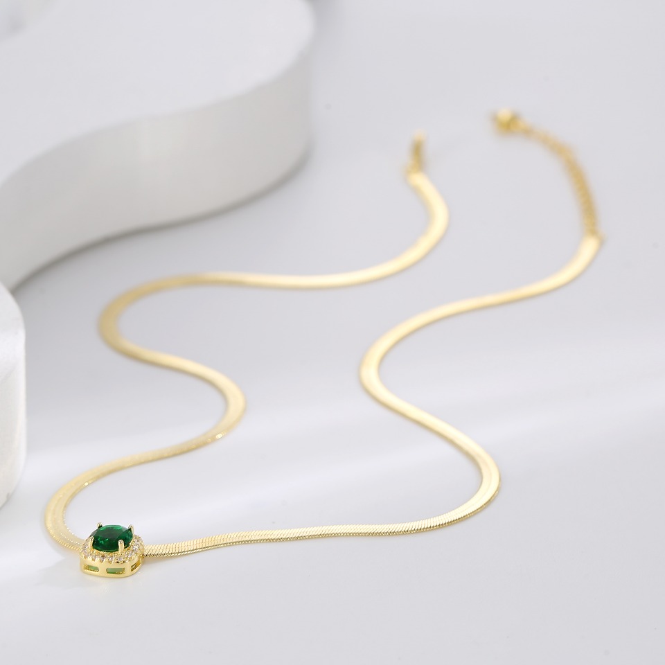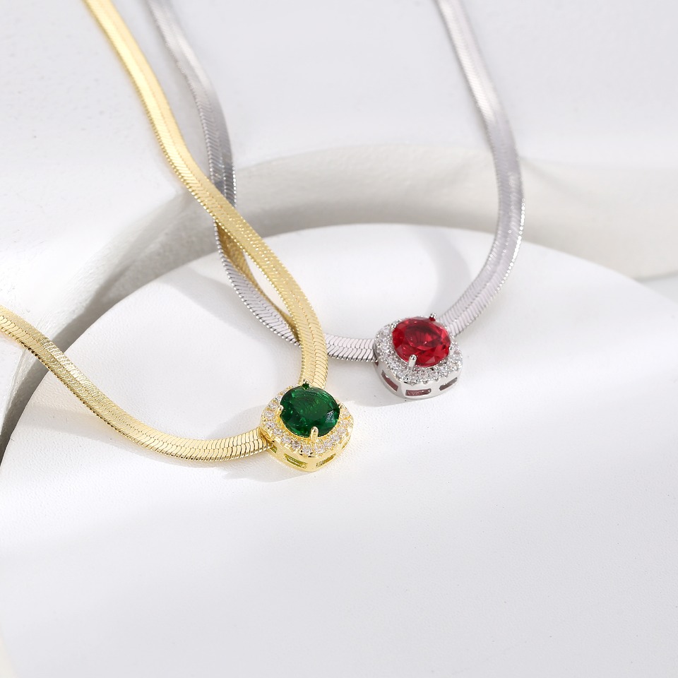 Eco-Friendly Copper Gold-Plated Necklace with Colored Cubic Zirconia