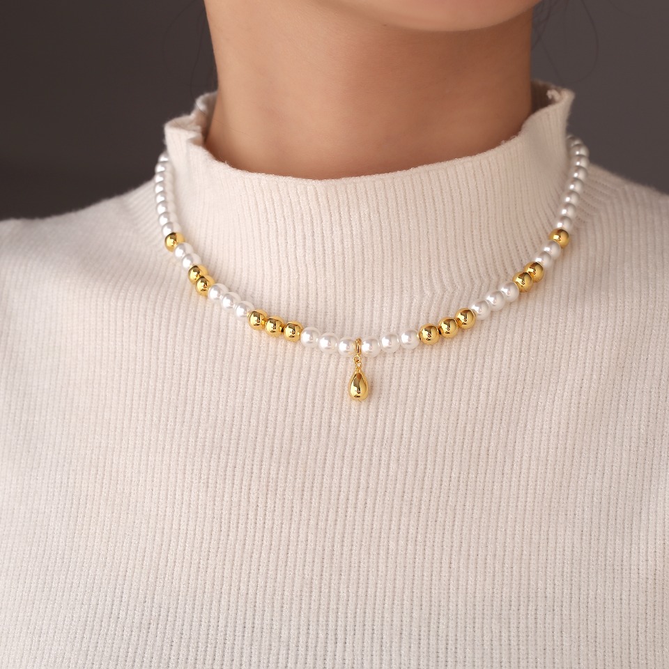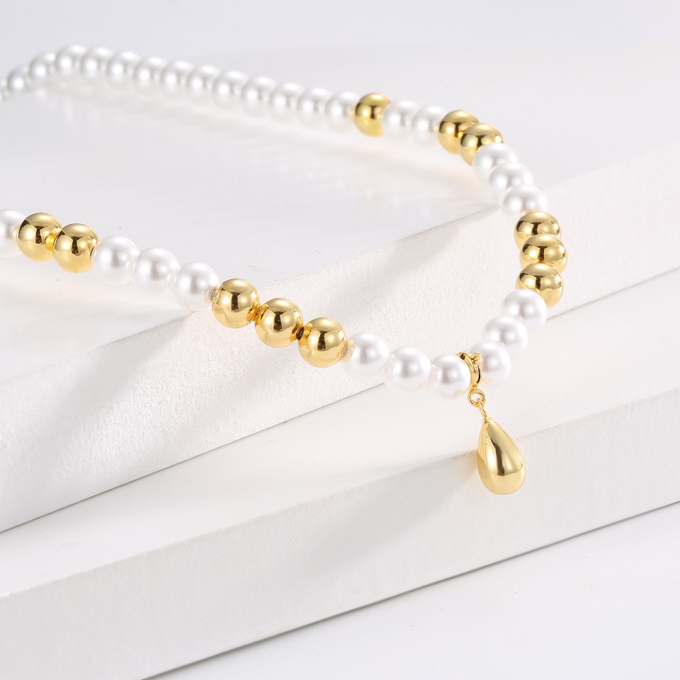 Eco-Friendly Copper Necklace with Real Gold Plating and Drop Pearl Design