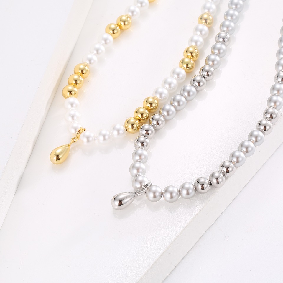 Eco-friendly Copper Necklace with Real Gold Plating and Teardrop Pearl Design
