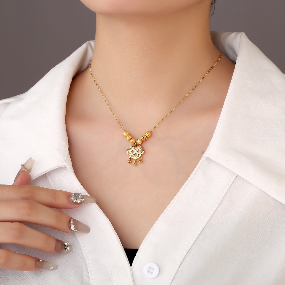 Product: Eco-friendly copper with real gold electroplating Ping’an Lock necklace