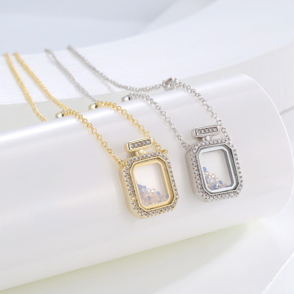 Eco-Friendly Copper Perfume Bottle Necklace with Real Gold Plating