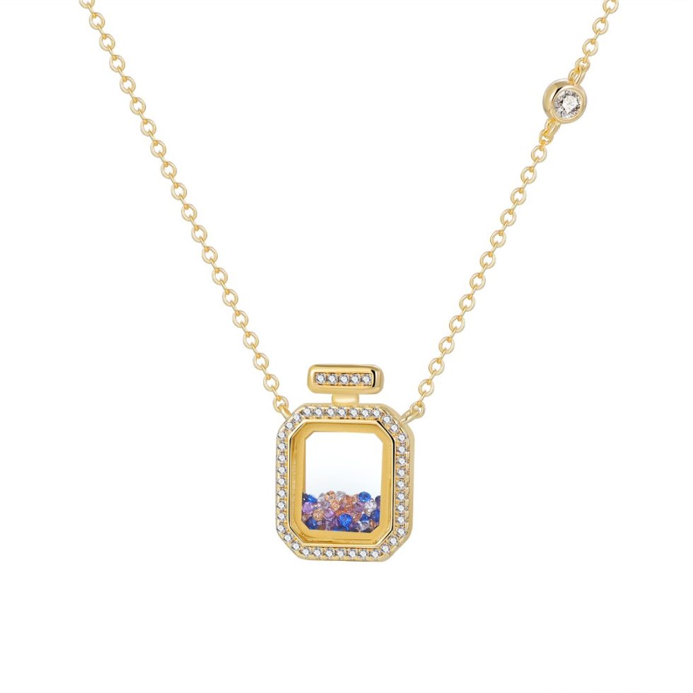 Stainless Steel with Real Gold Plating + Perfume Bottle Necklace