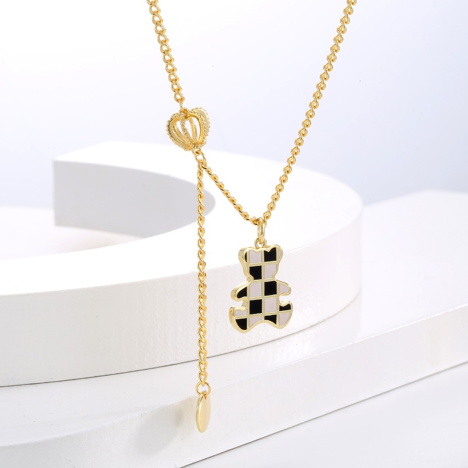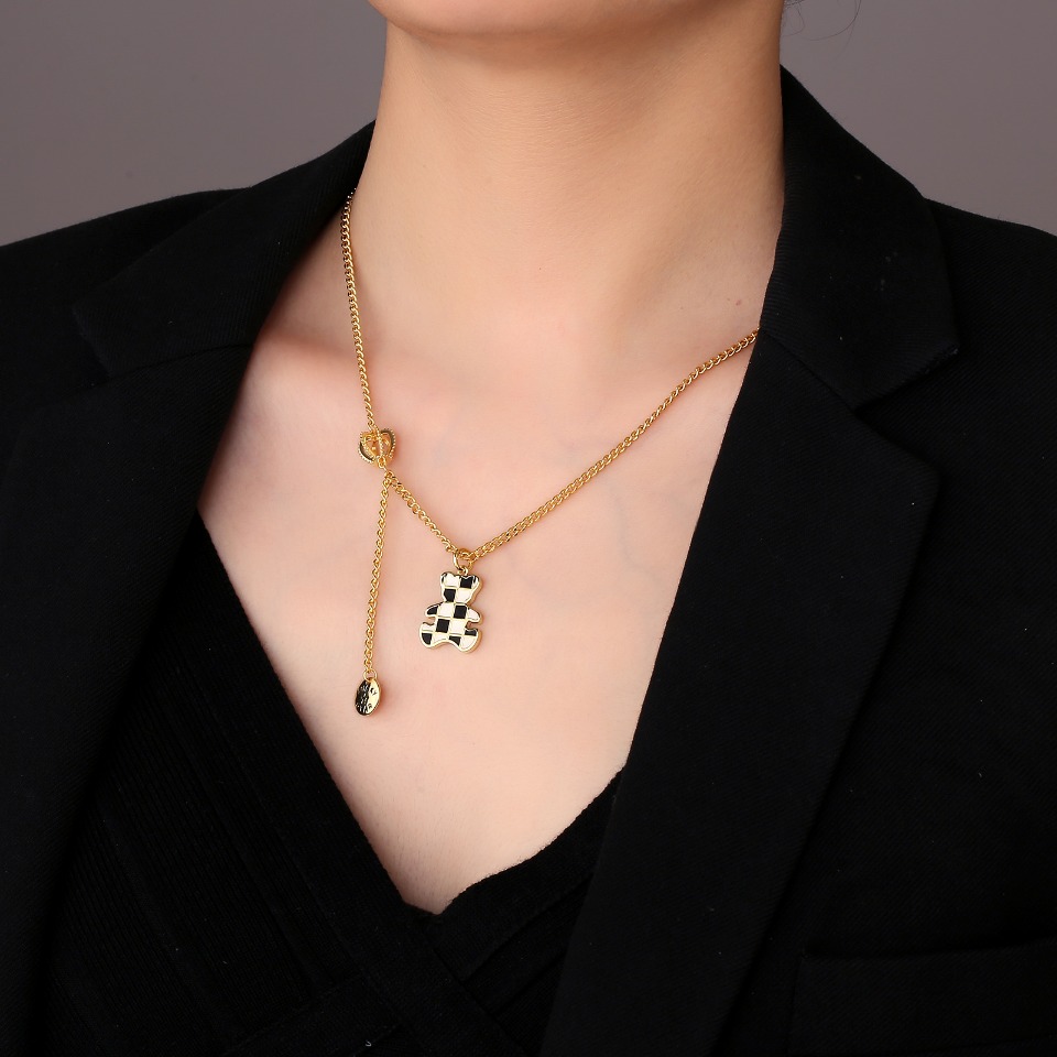 Eco-Friendly Copper Real Gold Plated Chessboard Pattern Necklace
