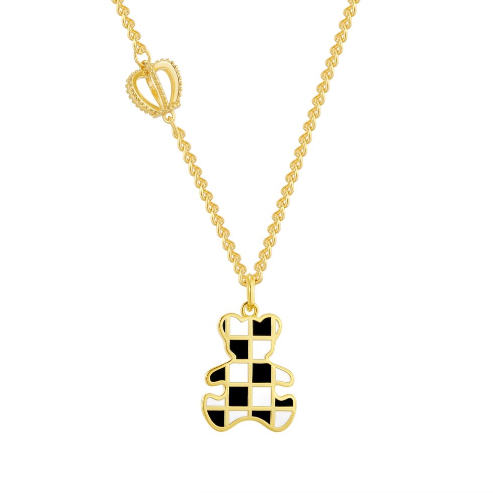 Checkerboard pattern necklace crafted with eco-friendly copper and genuine gold electroplating