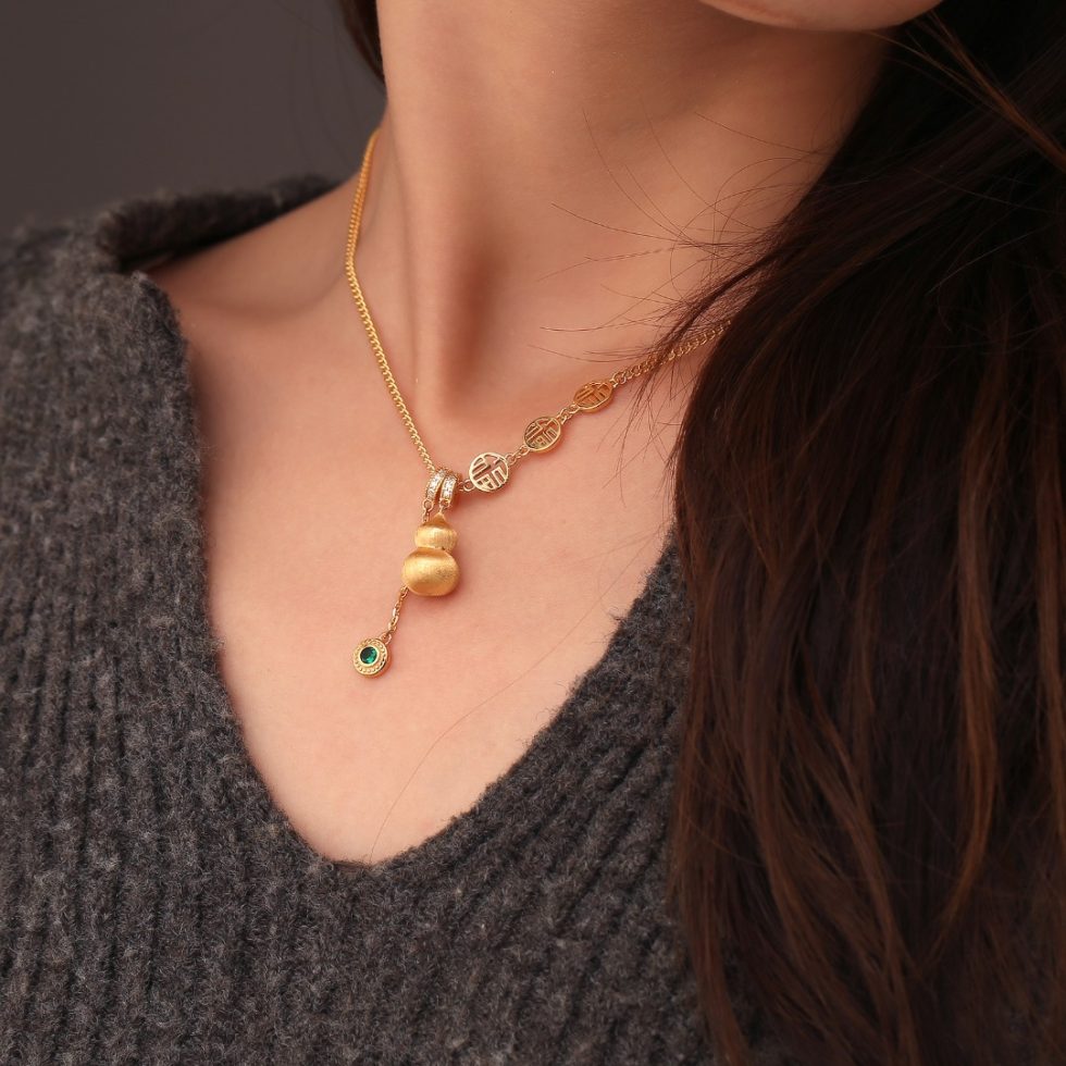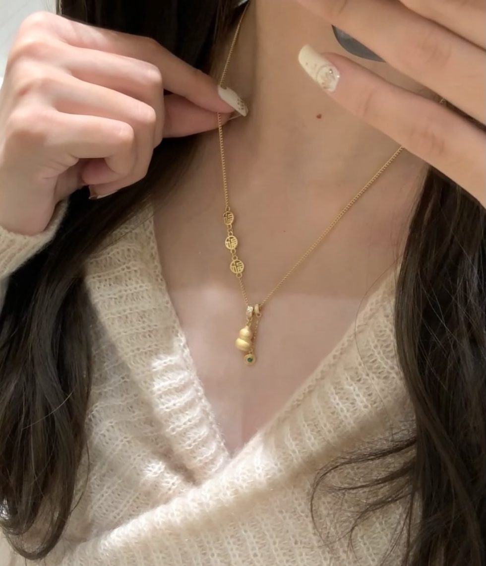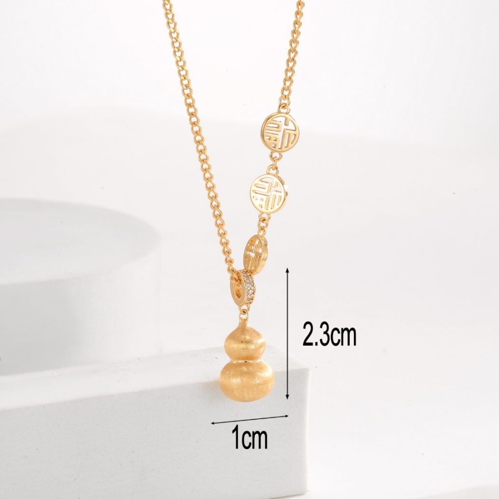Eco-Friendly Copper Real Gold-Plated Fortune Talisman Gourd Necklace