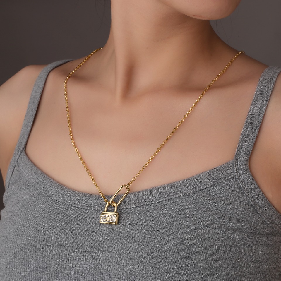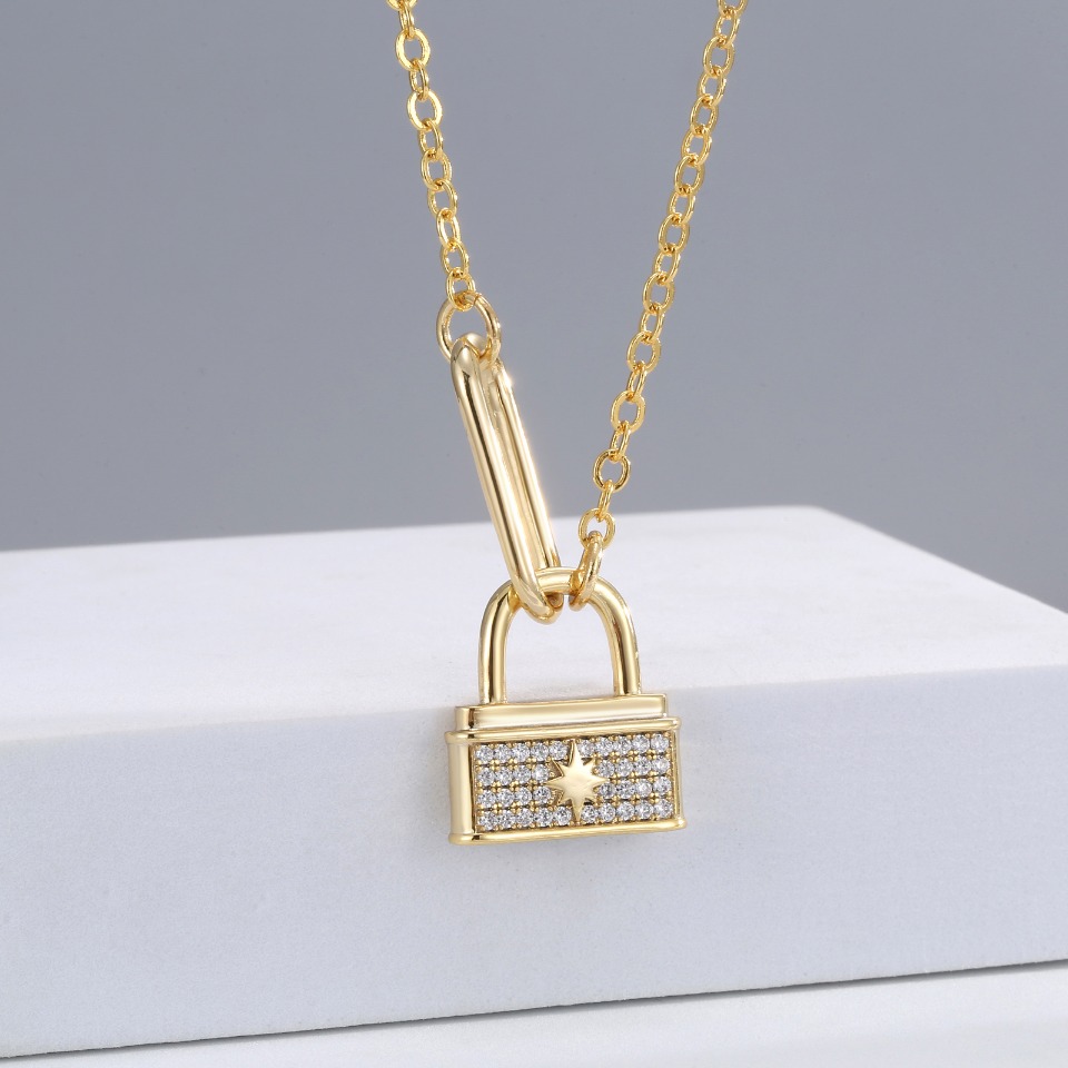 Eco-friendly copper with real gold plating lockhead necklace