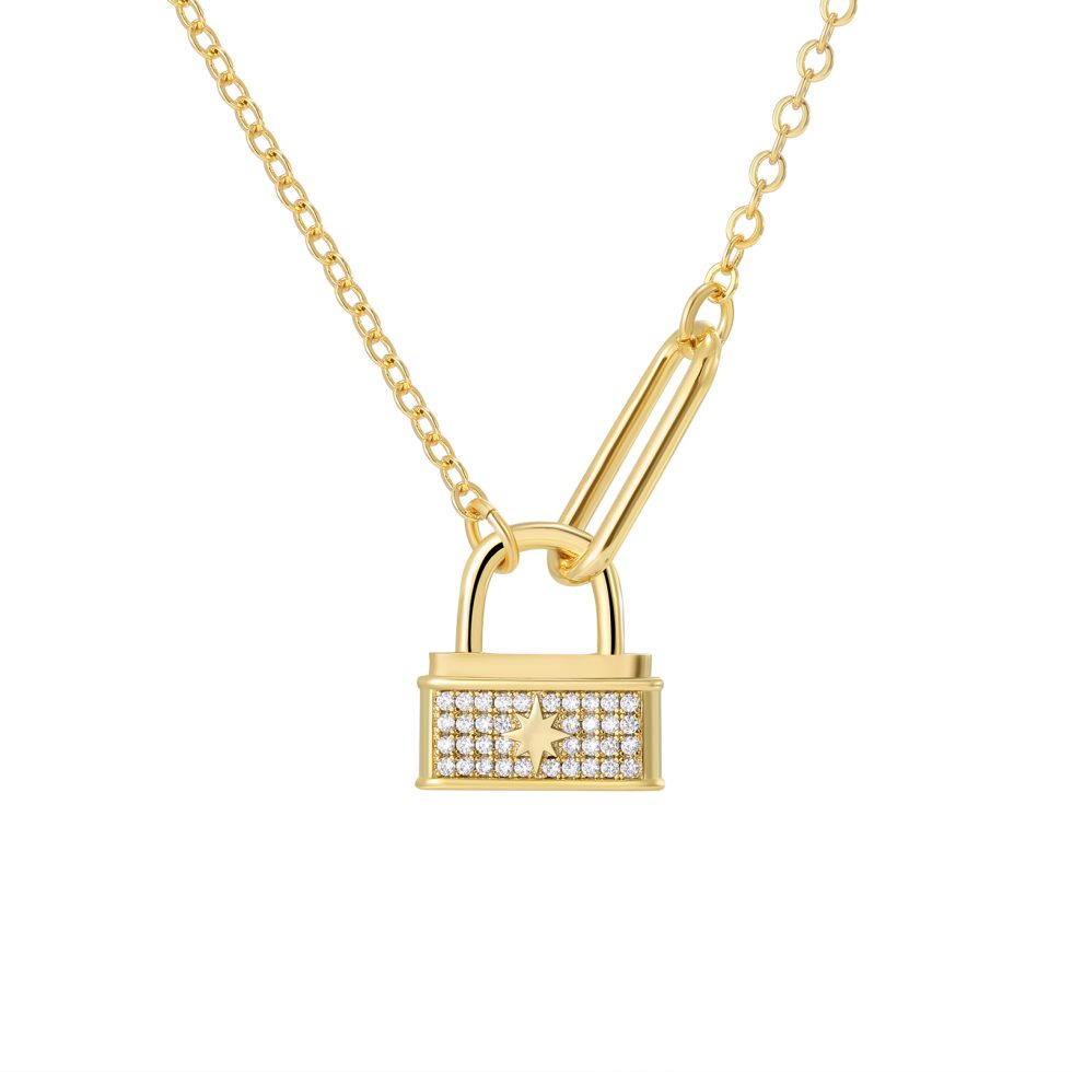 Eco-friendly copper necklace with real gold plating featuring a lockhead pendant design