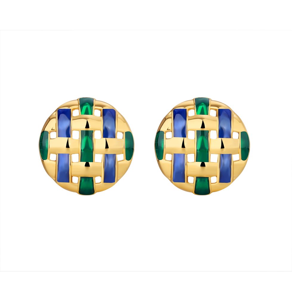 Eco-friendly copper earrings featuring real gold plating and luxury brand-inspired design.