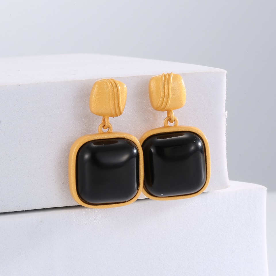 Eco-Friendly Copper Real Gold Plated Black Onyx Earrings