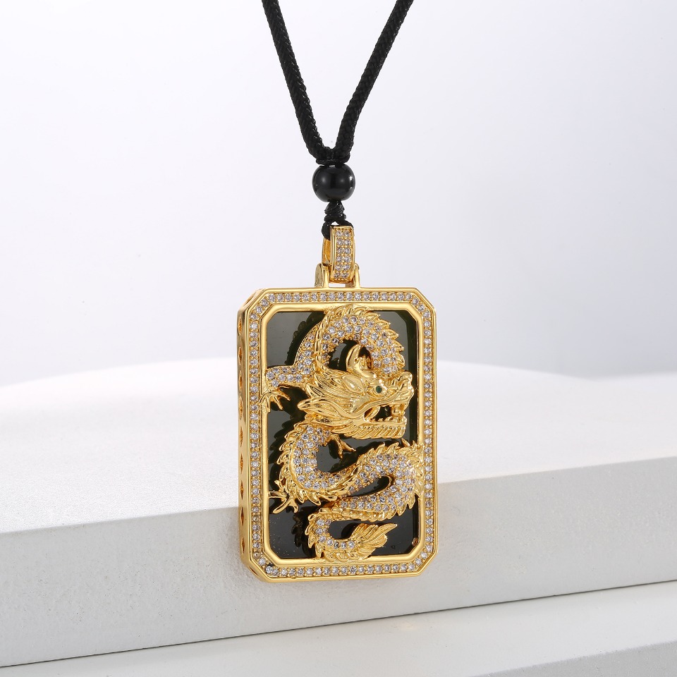 Environmentally-friendly copper with real gold plating + Dragon emblem necklace