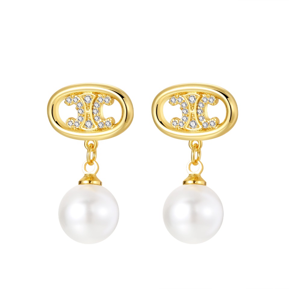 Hot Selling Eco-Friendly Copper Real Gold Plated Pearl Earrings